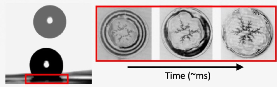 The Leidenfrost effect levitates small liquid drops above hot surfaces via a strong evaporative flux and is seen when water droplets skate across a hot pan. Understanding when this occurs is critical for the efficiency of numerous technologies, including the spray-cooling of next-generation electronics that our collaborators at Nokia Bell Labs are developing. Experiments at Bell have recently revealed counter-intuitive contact dynamics that display fractal surface wetting in competition with the nanoscale vapour flow under impacting droplets. This project will use unconventional mathematical modelling combined with computational techniques to gain unprecedented insight into this phenomenon combined with theory-driven targeted experiments at Bell.