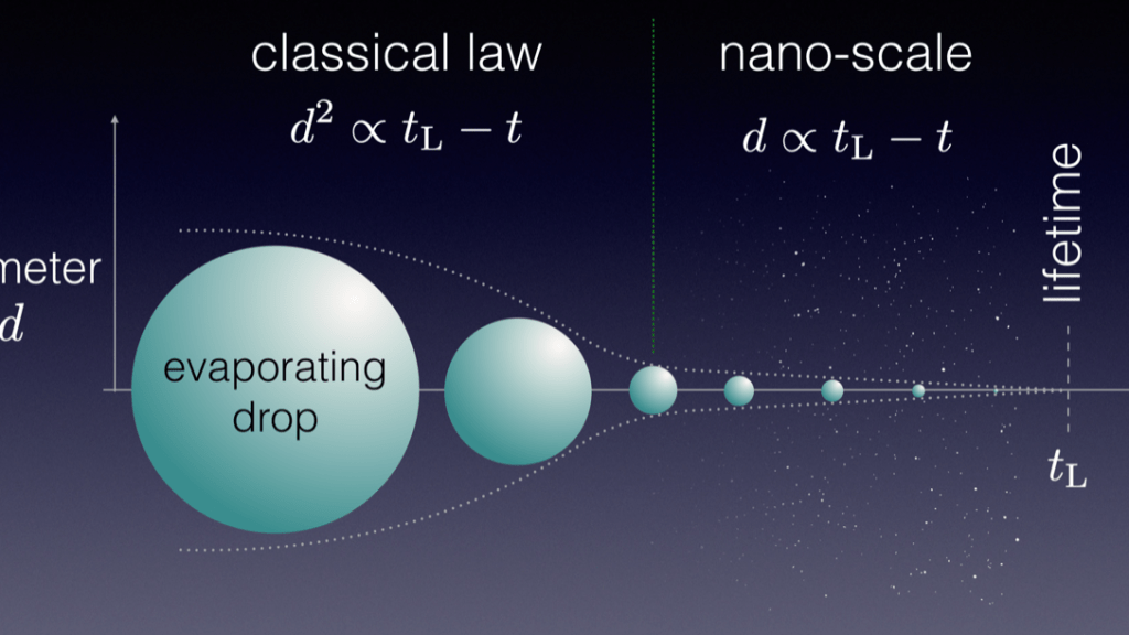 by James Sprittles October 18, 2019 Articles News A New Scene in the Disappearing Act of an Evaporating Liquid Drop Research Published in Physical Review Letters (image courtesy of Duncan Lockerby).